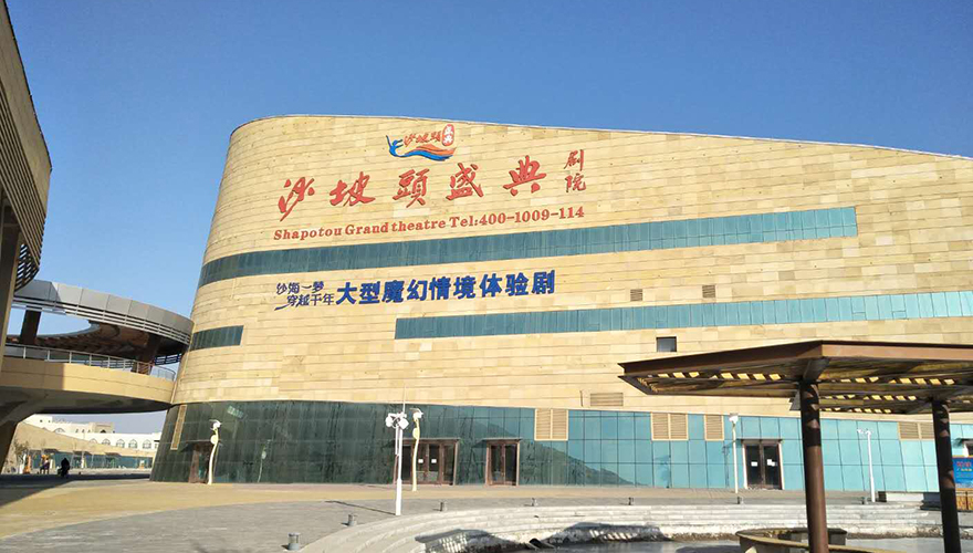 《沙坡頭盛典》是一臺大型全息浸沒式魔幻情境體驗劇,充分利用全息影像、玻璃晶球、巨型升降舞臺等現代舞美前沿科技,最大限度地豐富劇場空間縱深層次,顛覆傳統的觀演方式使整個劇場的潛能無限放大。演員在不同空間移動,觀眾以“介入者”的身份進入劇情,跟隨演員共同推動劇情的發展走向,具有極強的融入感和互動性。